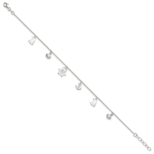 Sterling Silver Polished Ocean Theme Plus Ext. Anklet 9in