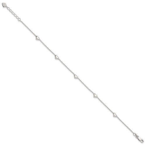 Sterling Silver Puffed Heart 5-Station Plus Extender – Total Anklet 10in