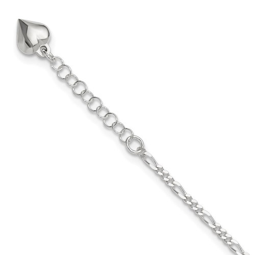 Sterling Silver Puffed Heart Charms Plus Extender – Total Anklet 9in