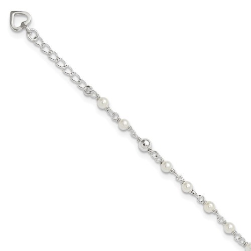 Sterling Silver Puffed Heart Dangle Plus Extender – Total Anklet 9in