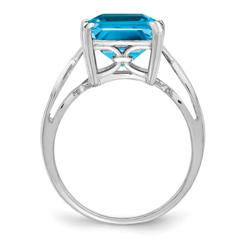 Sterling Silver Rhodium Octagonal Blue Topaz Ring 7in