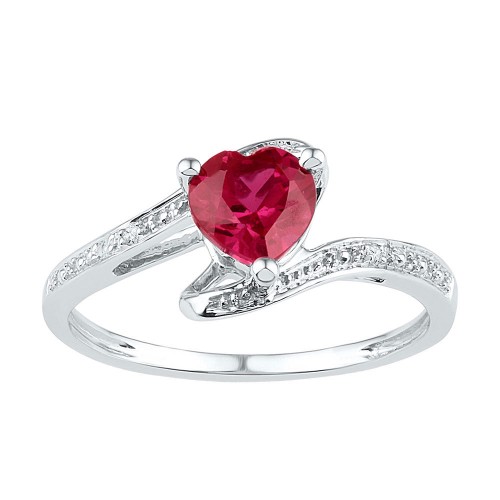 Sterling Silver Sterling Silver Womens Round Lab-Created Ruby Heart Diamond Ring 1.00 Cttw 3 Gram S