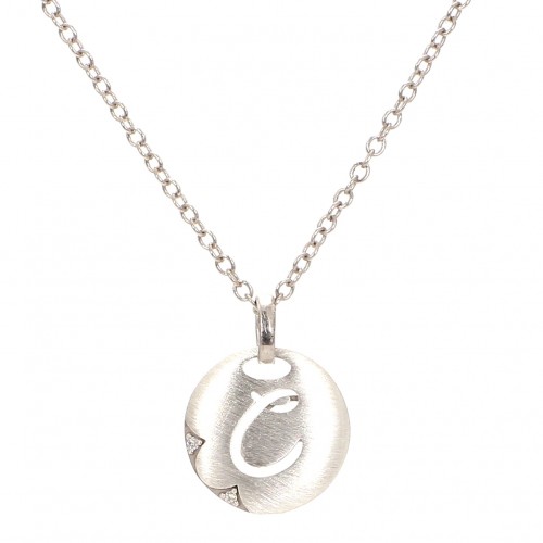 SILVER .01CT DIA L INITIAL SATIN CHARM — pendant & chain included.