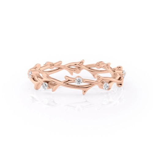 This nature-inspired wedding band is shaped like a twig, representing a new family tree branch. Two gold branches interweave to create a delicate, thin band that elongates the finger. VVS diamond accents add sparkle and contrast to the piece. A perfect complement to The Twig engagement ring collection.