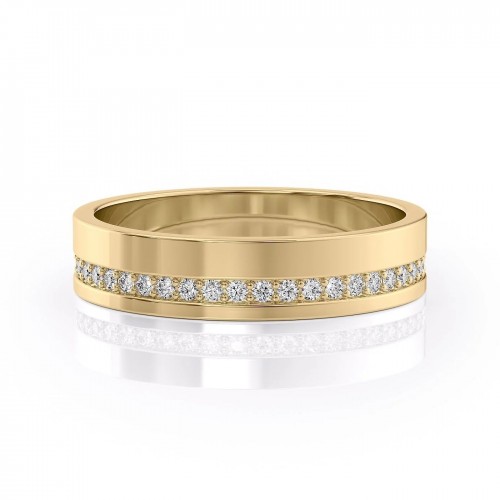 Crafted to perfection, The Marilyn features a mesmerizing channel-set of sparkling diamonds, carefully arranged to capture and reflect the radiance of your eternal bond. The continuous row of diamonds symbolizes your unbroken love and unwavering devotion, while the sleek, polished metal adds a touch of contemporary allure. This wedding band is a real piece of art.