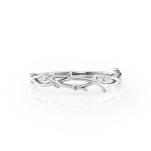 The Sofia is a unique pave gap wedding band. It’s slim in front, at only 2mm – and even thinner in the back, where it tapers down to a thin point. Different-size VVS diamonds line the whole width of the band for an understated but lustrous show of light.