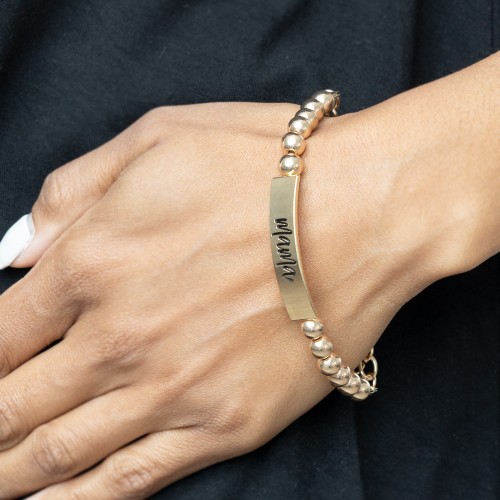 Embossed in a dainty gold heart, a dotted gold frame is stamped in the word, “Mama,” creating a sentimental pendant below the collar. Features an adjustable clasp closure.