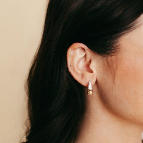 Thick Huggie with Bezel set Emerald cut Diamonds