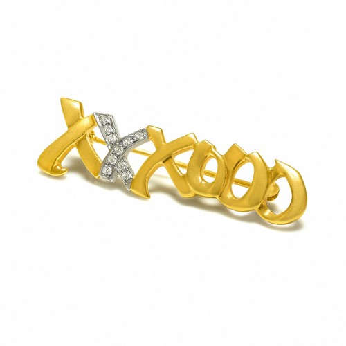 Tiffany & Co. Paloma Picasso XXXOOO Diamond Brooch 18K Gold – Vintage 1983