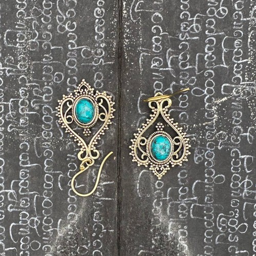 Tiger’s Eye Heart Doily Lace White Brass Earrings