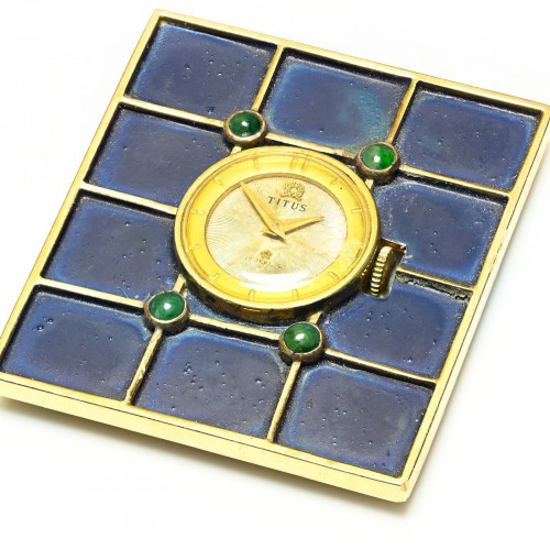 Art Deco Gold Enamel Watch by Titus