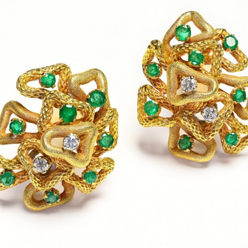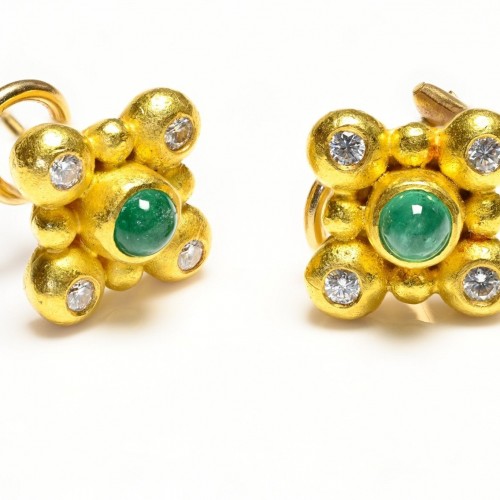 Tracy Dara Kamenstein 22K Gold Emerald Diamond Earrings.