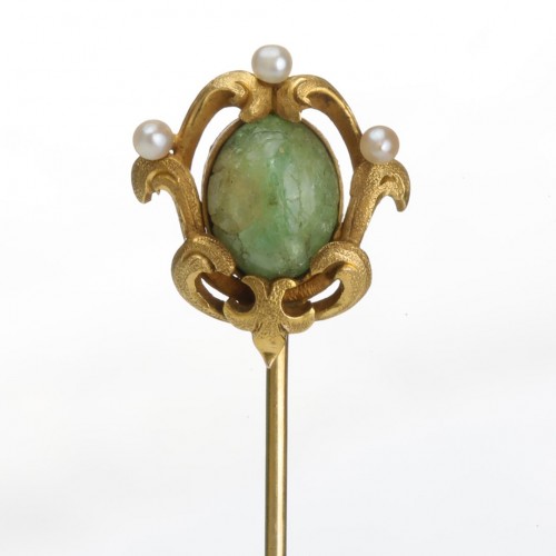 Transitional Hans Brassler & Co. Gold Jade Stick Pin