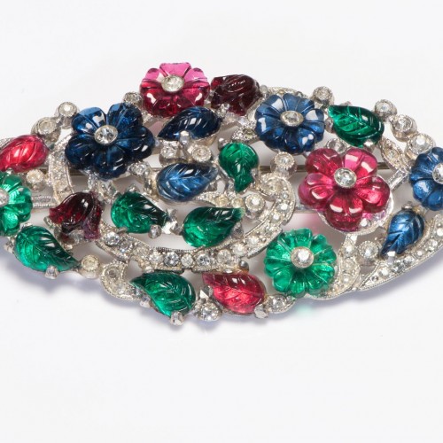 Be the first to review “Trifari 1930’s Tutti Frutti Alfred Philippe Blue Green Red Flower Crystal Brooch” Cancel reply