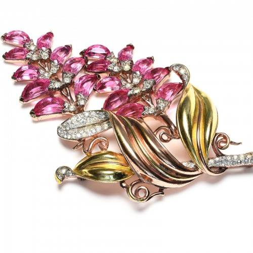 Trifari 1940’s Alfred Philippe Pink Crystal Demilune Wisteria Brooch