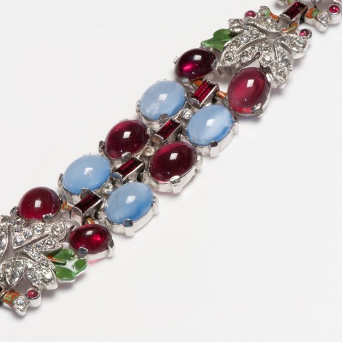 Trifari by Alfred Philippe Tutti Frutti Blue Red Glass Leaf Crystal Bracelet