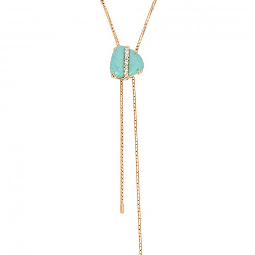 Brass, 18k Gold Plated, Reconstituted Turquoise, Cubic Zirconia