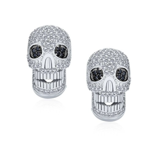 Unisex Biker Jewelry CZ Skull Stud Earrings, Goth Punk Dia De Los Muertos Style