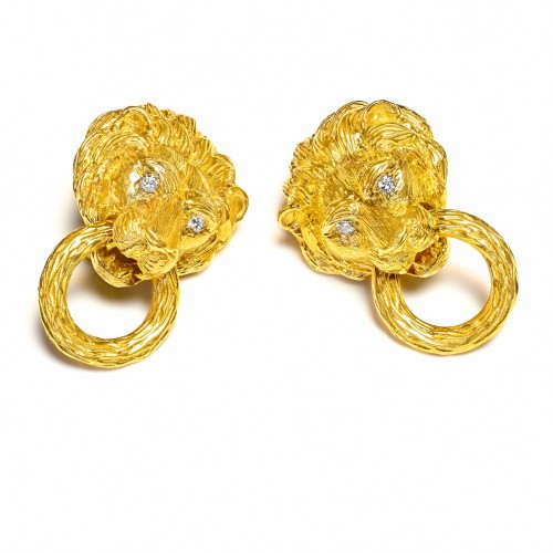 Van Cleef & Arpels 18K Gold Lion Diamond Door Knocker Earrings