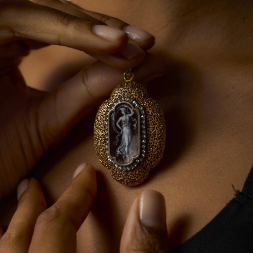 Victorian diamond enamel 18k rose gold woman figure pendant