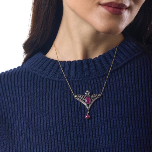 Victorian ruby diamond 18k gold silver necklace