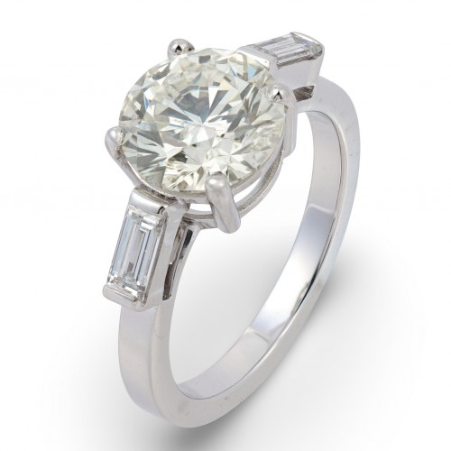 Framing the center stone are four single cut diamonds totaling approximately 0.10 carats. Their bright H–I color and crisp VS clarity contribute delicate flashes of light, adding vintage character and enhancing the overall harmony of the design. Single cuts, known for their charming sparkle, give the ring a touch of antique warmth that complements the central diamond’s brilliance.