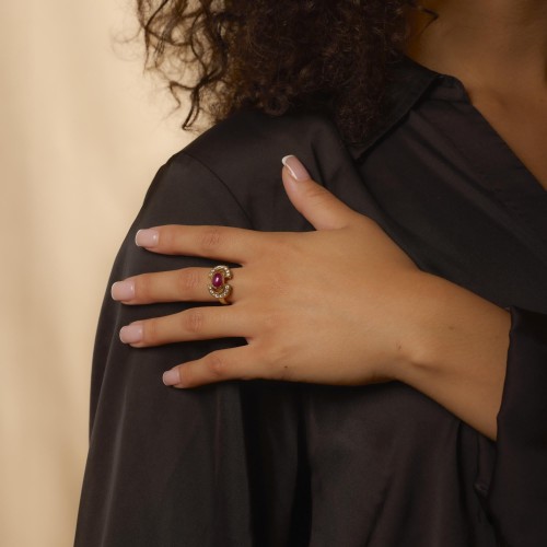 Vintage 1.75 carat cabochon cut ruby diamond 18k yellow gold cocktail ring