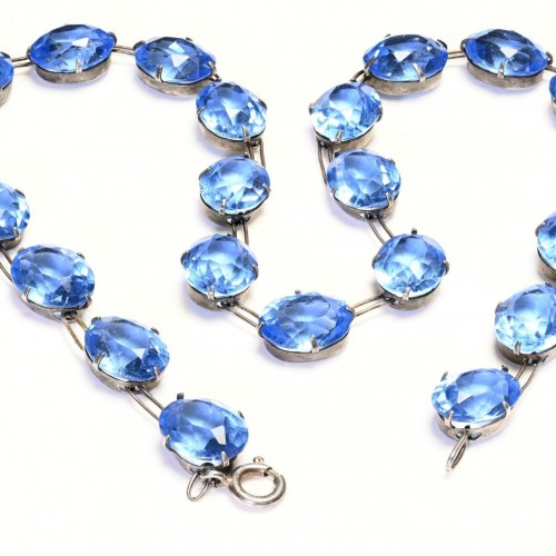 Vintage 1930’s Art Deco Sterling Silver Blue Paste Riviere Chain Necklace