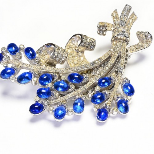 Be the first to review “Vintage 1940’s Coro Rhodium Plated Blue Cabochon Glass Bouquet Flower Brooch” Cancel reply