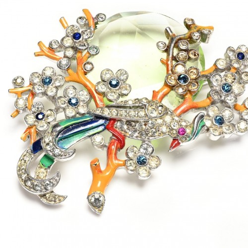 Be the first to review “Vintage 1940’s Trifari Alfred Philippe Green Crystal Enamel Flower Bird Brooch” Cancel reply