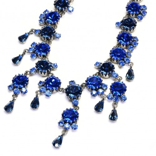 Vintage 1950’s Austrian Royal Blue Crystal Tassel Collar Necklace