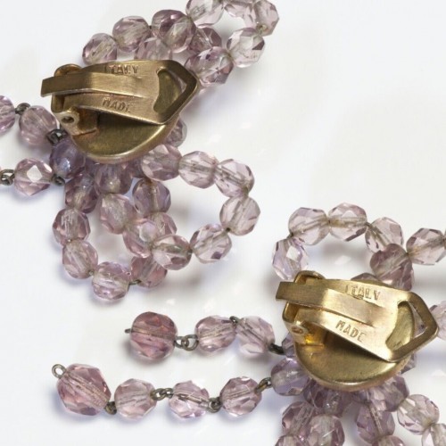 Vintage 1960’s Italian Purple Crystal Beads Tassel Bow Earrings