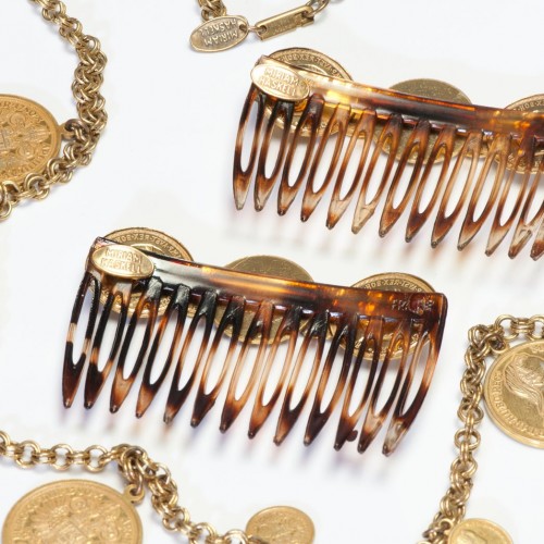Be the first to review “Vintage 1970’s Miriam Haskell Maria Theresa 1870 Coin Hair Comb Necklace Set” Cancel reply