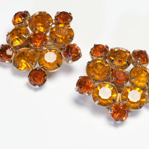Be the first to review “Vintage 1970’s Pierre Balmain Yellow Orange Crystal Flower Earrings” Cancel reply