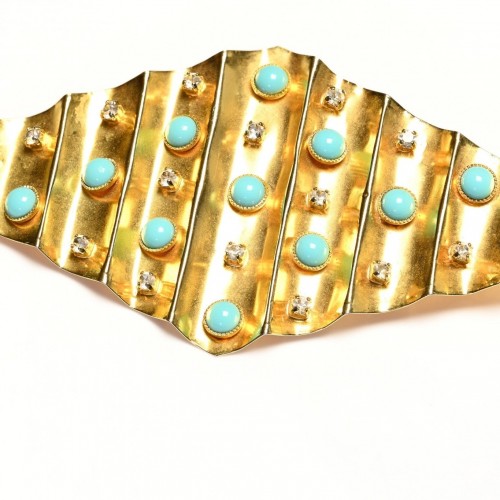 This vintage brooch is a collector’s dream with its large, intricate design and sparkling red and black crystals. Made by Butler & Wilson in the 1980s, this brooch captures the timeless charm of Minnie Mouse. Perfect for adding a playful touch to any outfit. Approximate Measurements: Length 3.3″, Width 3″.