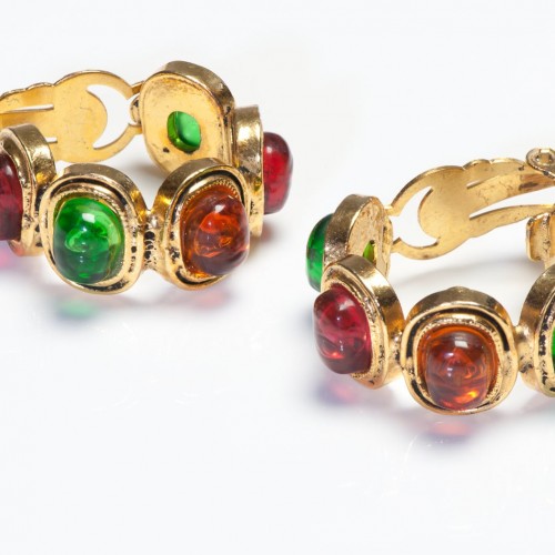 Vintage 1980’s Chanel Paris Maison Gripoix Green Red Brown Glass Hoop Earrings