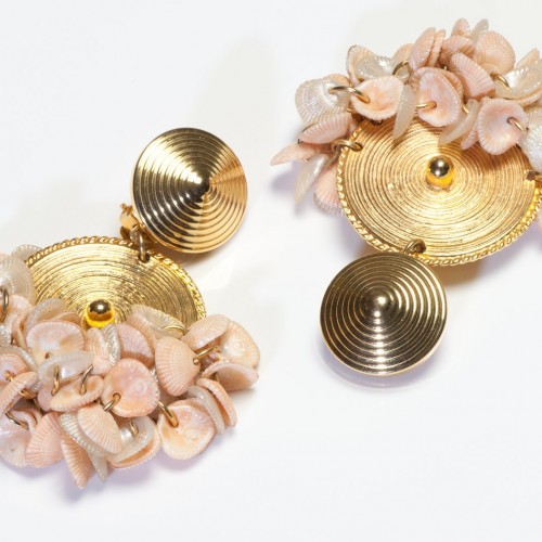Vintage 1980’s Francoise Montague Paris Long Pink Faux Shell Disc Hoop Earrings