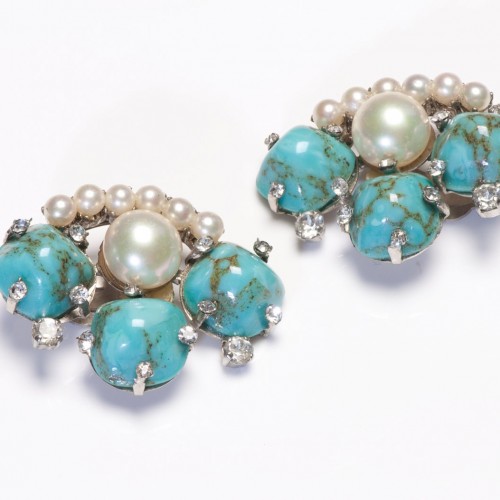 Be the first to review “Vintage 1980’s French Turquoise Cabochon Glass Pearl Crystal Earrings” Cancel reply