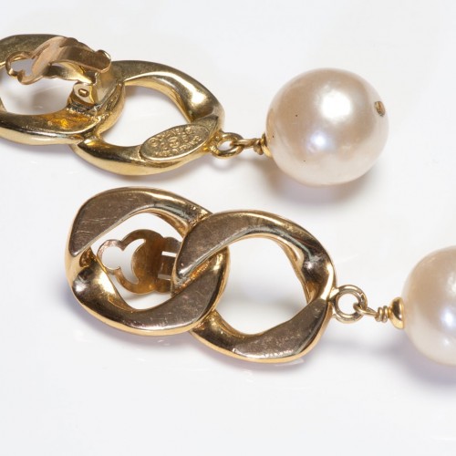 Vintage 1990’s Chanel Collection 28 Gold Plated Chain Link Pearl Earrings