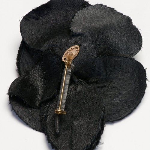 Vintage 1990’s Chanel Paris Black Quilted Fabric Camellia Flower Brooch