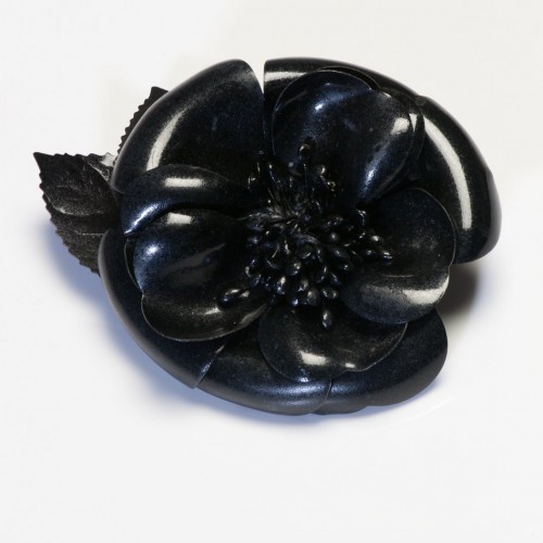 Vintage 1990’s Chanel Paris Black Resin Camellia Flower Brooch