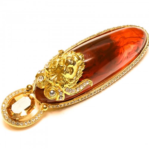 Vintage 1990’s Gianfranco Ferre Brown Lucite Lion Crystal Brooch