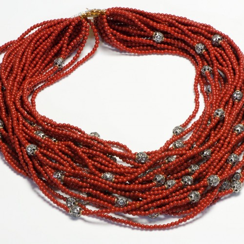 Vintage 1990’s Valentino Garavani Red Beads Crystal Multi Strand Necklace