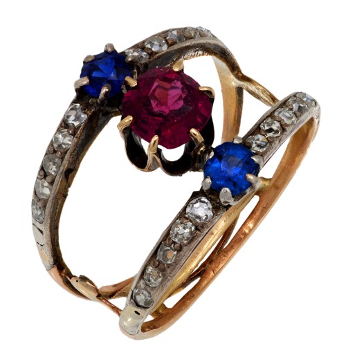 Vintage 2.10 carat sapphire diamond platinum cluster ring