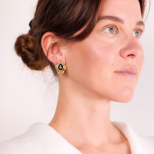 Be the first to review “Vintage 4.20 carat total weight sapphire diamond 18k yellow gold earrings” Cancel reply