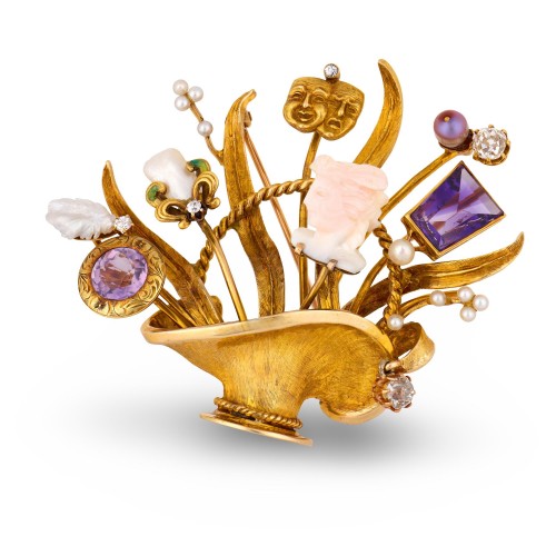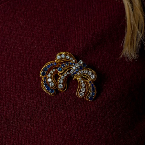 Vintage 4.40 carat total weight diamond and sapphire 18k yellow gold brooch