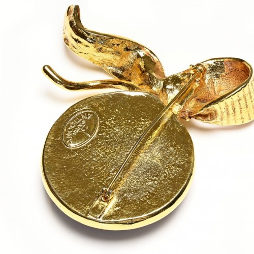 Vintage Antigona Paris Gold Plated Black Carved Glass Bow Brooch