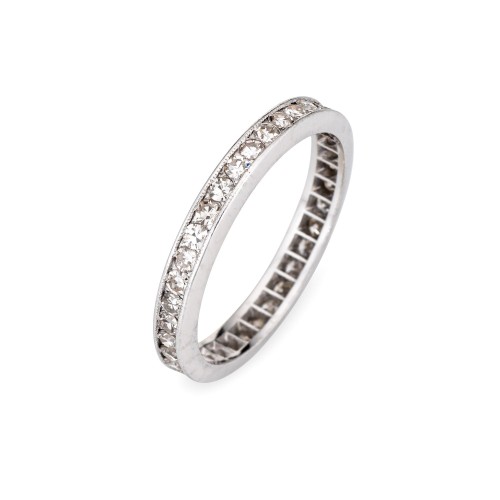 Vintage Art Deco Diamond Eternity Ring Sz 5.75 Platinum Band Wedding Jewelry