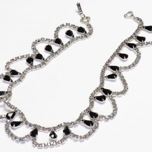 Vintage Astra Rhodium Plated Black Crystal Flower Collar Necklace.