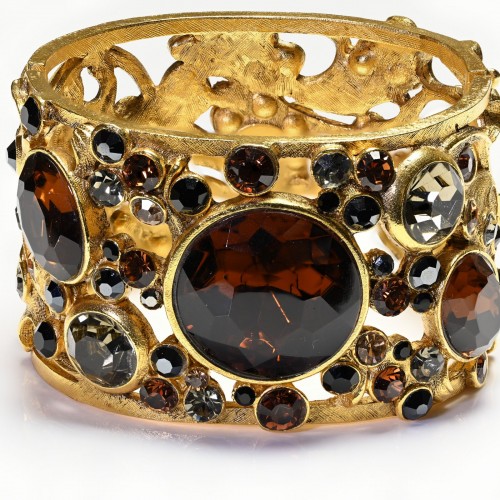 Vintage Barrera Wide Brown Crystal Flower Bangle Bracelet